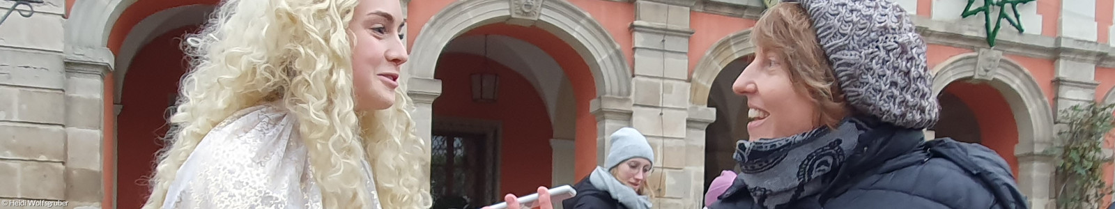 Christkind mit goldenem Haar im Interview mit Pfarrerin