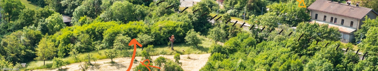 Zum einen sollen sich zwei digital abrufbare Pilgerwege durch die Streuobstwelt ziehen und zum anderen ein Platz zum Verweilen auf einem Streuobstgrundstück unterhalb des Bahnhofs entstehen. Angedacht ist eine Art Sitzskulptur, die an Bahnschienen erinnert, halbkreisförmig beginnt, sich den Hang hinaufschlängelt und dann am Ende gen Himmel weißt. Wie das alles genau ausschaut ist noch in Planung.